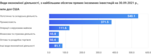 У структурі прямих іноземних інвестицій інструменти участі у капіталі склали 1210,5 млн дол США, що на 8,4% більше порівняно з даними на 31.12.2020.