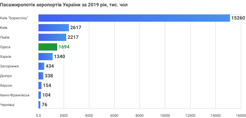 Більше 1 млн. чол. – пасажиропотік міжнародного аеропорту Одеса
