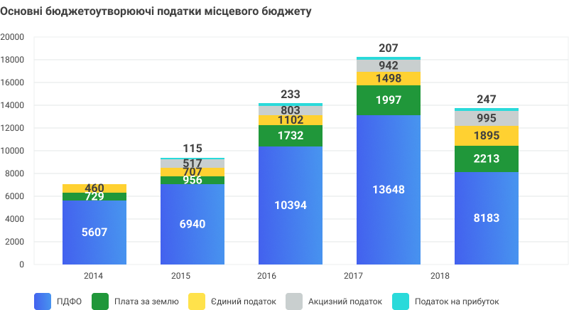 В результаті децентралізації акцизний податок та податок на прибуток був переданий місцевим бюджетам і надходив з 2015 року. За період з 2015 р. акцизний податок збільшився на 478,2 млн ₴ або на 92,5%