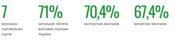 Морські торгівельні порти мають відповідну інфраструктуру для здійснення вантажних операцій із переробки сухих та наливних вантажів, перевезення пасажирів та виконання допоміжних функцій: бункеровка, відстій транспортних, спеціалізованих і службово-допоміжних суден.